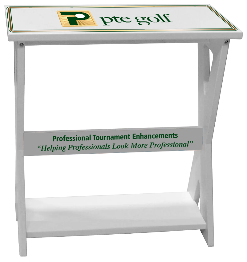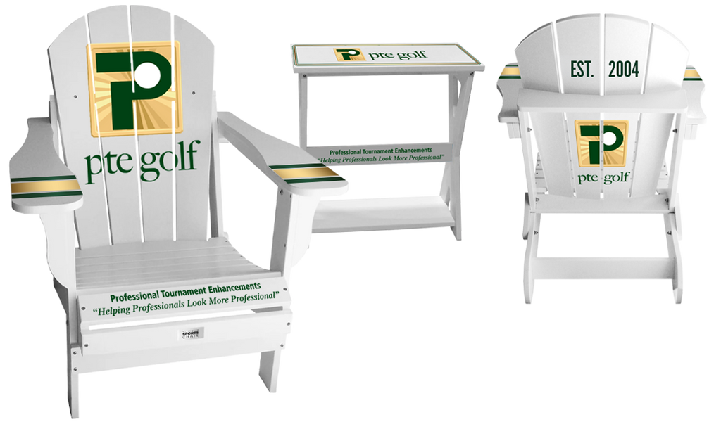 Our Adult resin folding chair can hold up to 440 LBS, and is made from recycled high density resin material. We can logo the front, back, arms on the chairs and the top and sides of the tables.